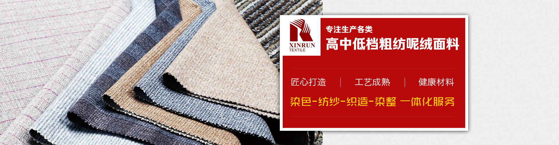 上海鑫潤紡織品有限公司是一家從事開發,生產,銷售為一體的毛紡面料公司,公司生產各類高中低檔粗紡呢絨面料,并下轄控股毛紡廠3家,擁有先進的生產設備和的管理體系,不僅在國內市場享有良好地信譽,而且產品遠銷美國,歐洲,俄羅斯,韓國,日本等不同國家,贏得了國外市場的一致好評。憑借優良的品質,良好的信譽,我公司還是ZARA,H&M,C&A,JACK&JONES,MANGO,TARGET,PROMODE,ORSAY等國外知名品牌的供應商。